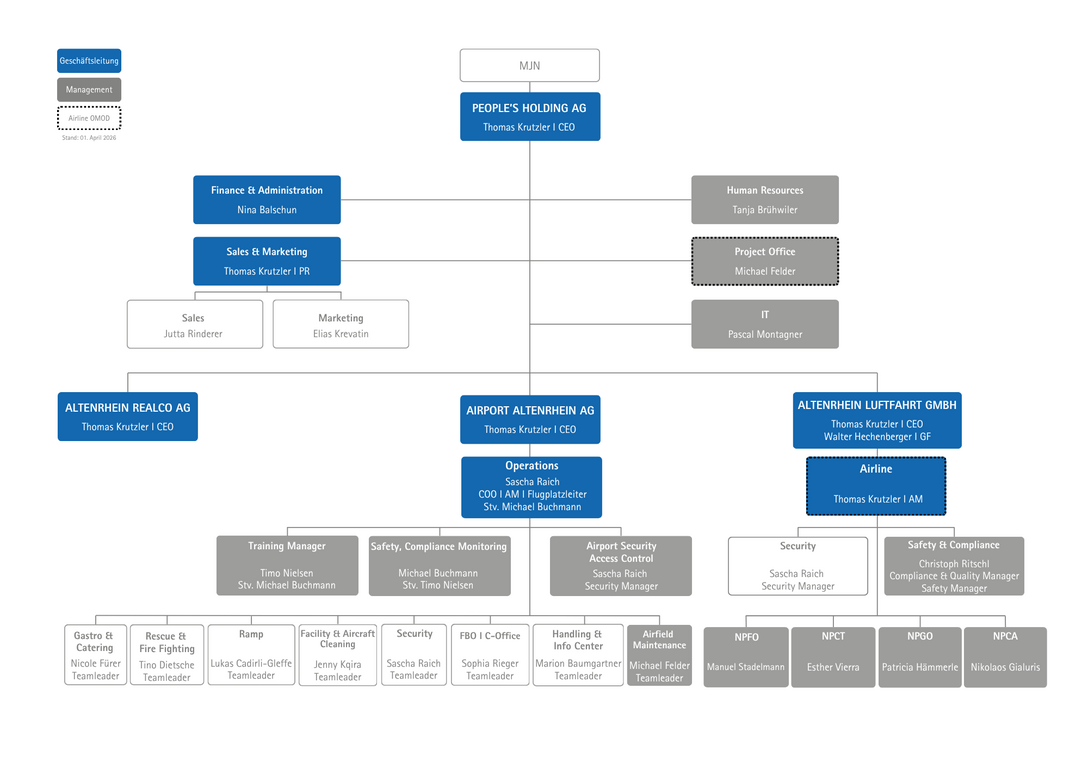 Die People's Air Group (auch People's Holding AG) umfasst die Altenrhein Realco AG (Immobilien), die Altenrhein Luftfahrt GmbH und die Airport Altenrhein AG. Stand ab 01.12.2025.
